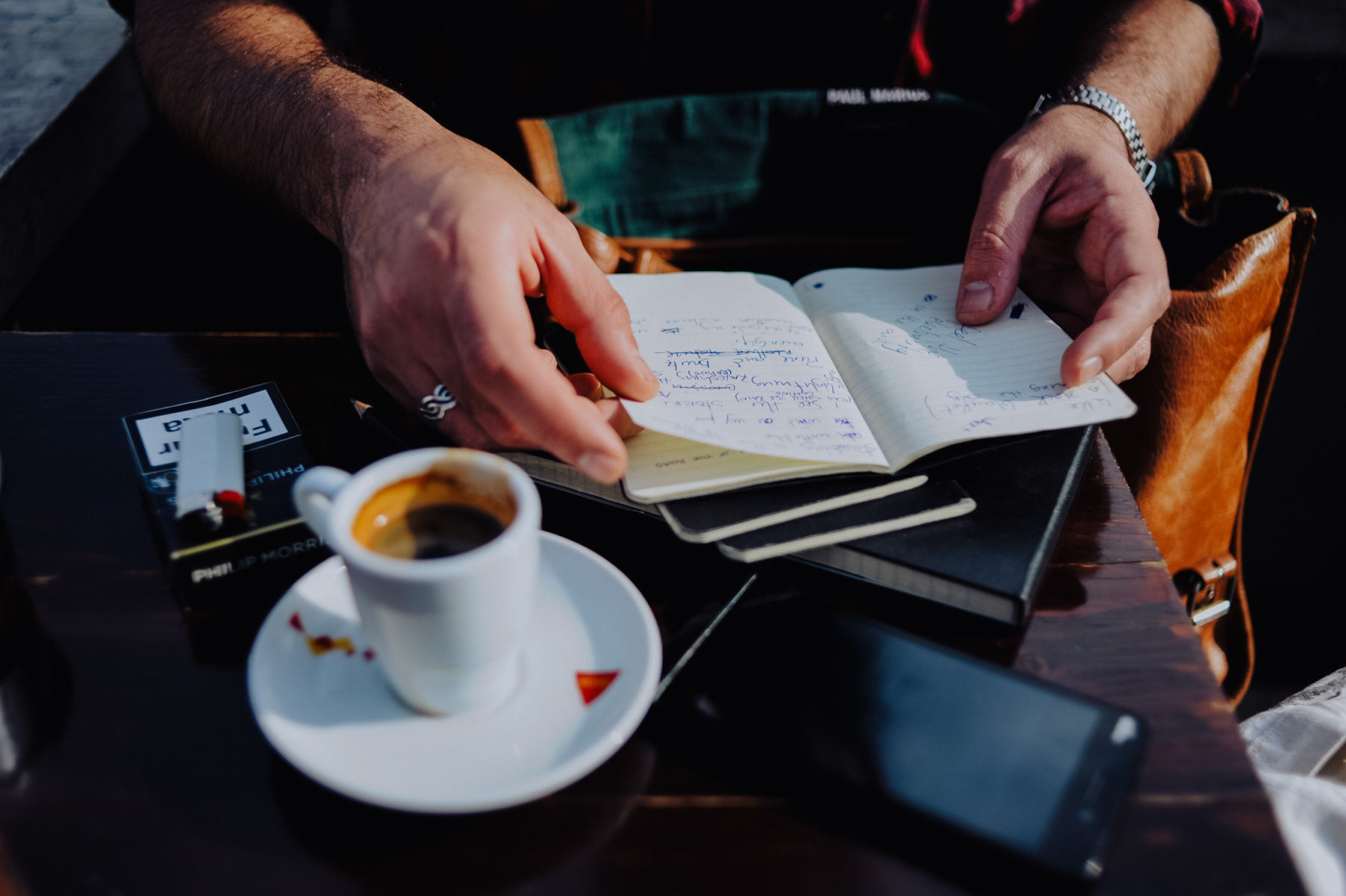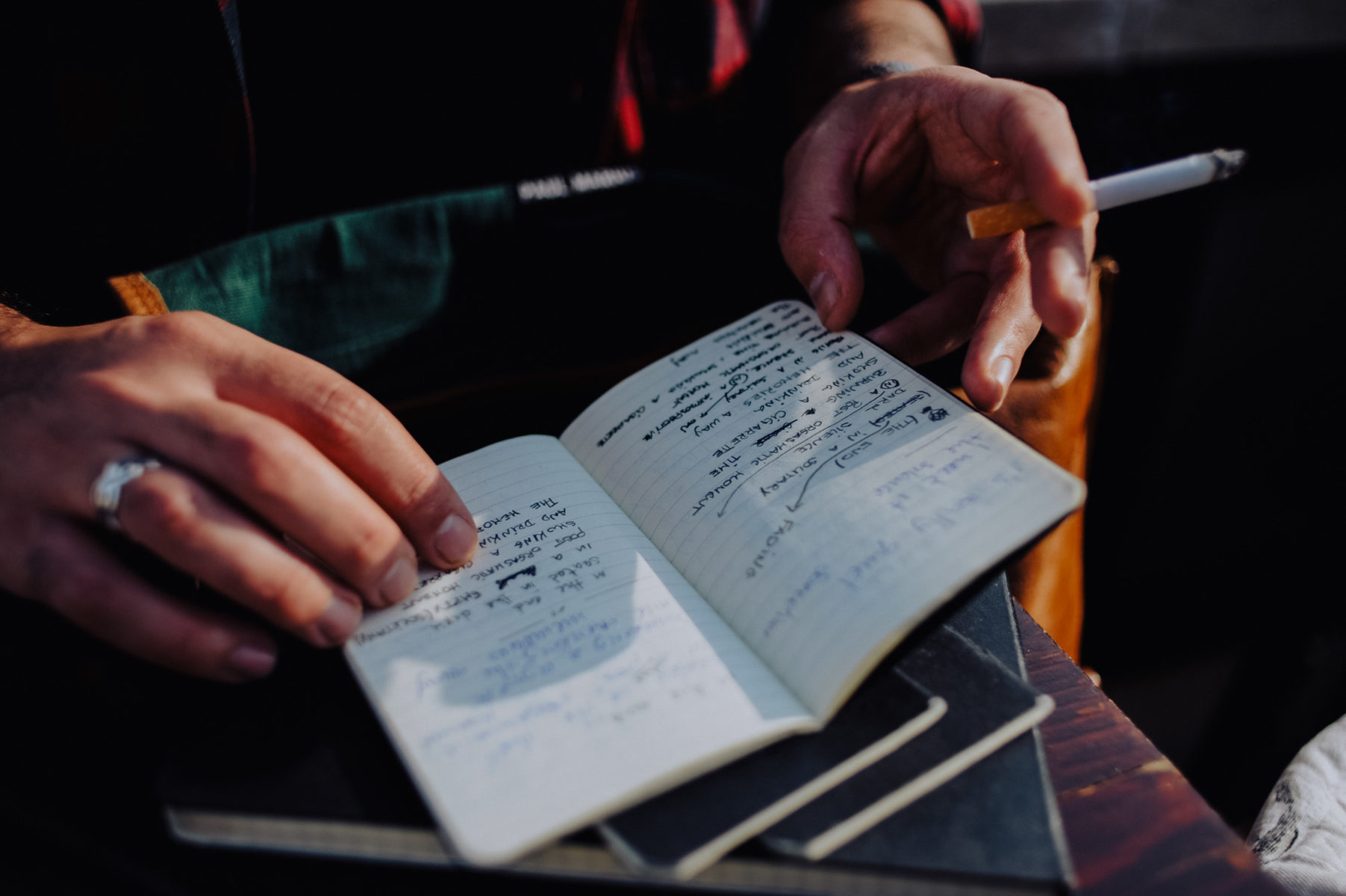 Joseph is a writer, screenwriter and poet. He walks around Lisbon, enjoying a sunny winter morning, taking a coffee, smoking a cigarette. In his bag he caries his notebooks, on working poems, single words, notes, about ten lighters, his son’s star war lego figures, his travel visa, the keys to a house he forgot to return, his cigarette pack, pens, phone, charger. He is a storyteller, with humour and irony, a pirate, with a long dark beard.