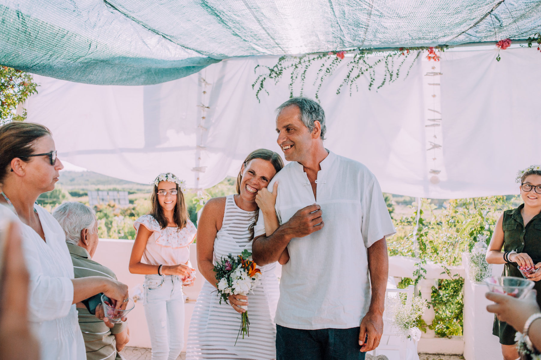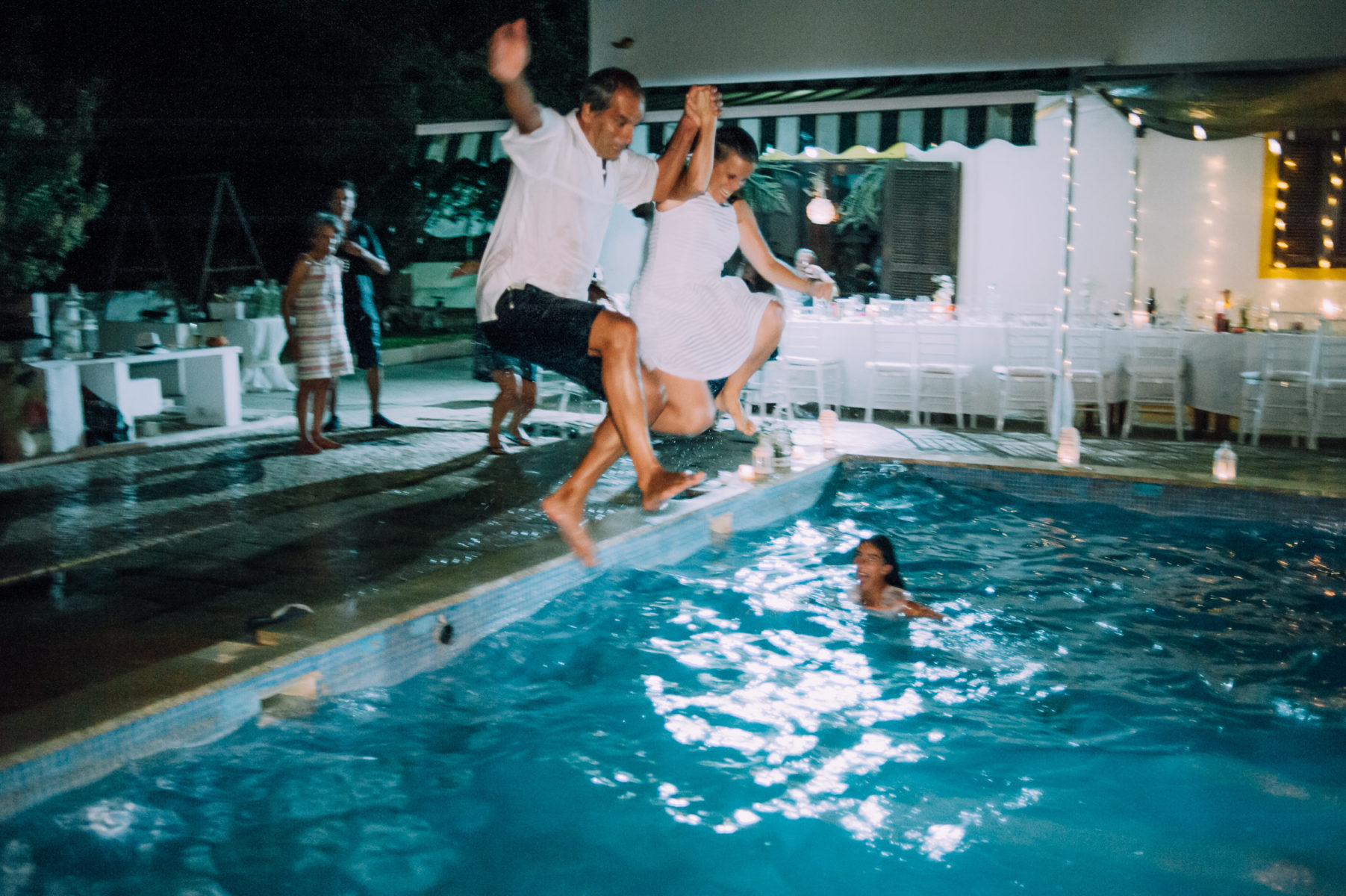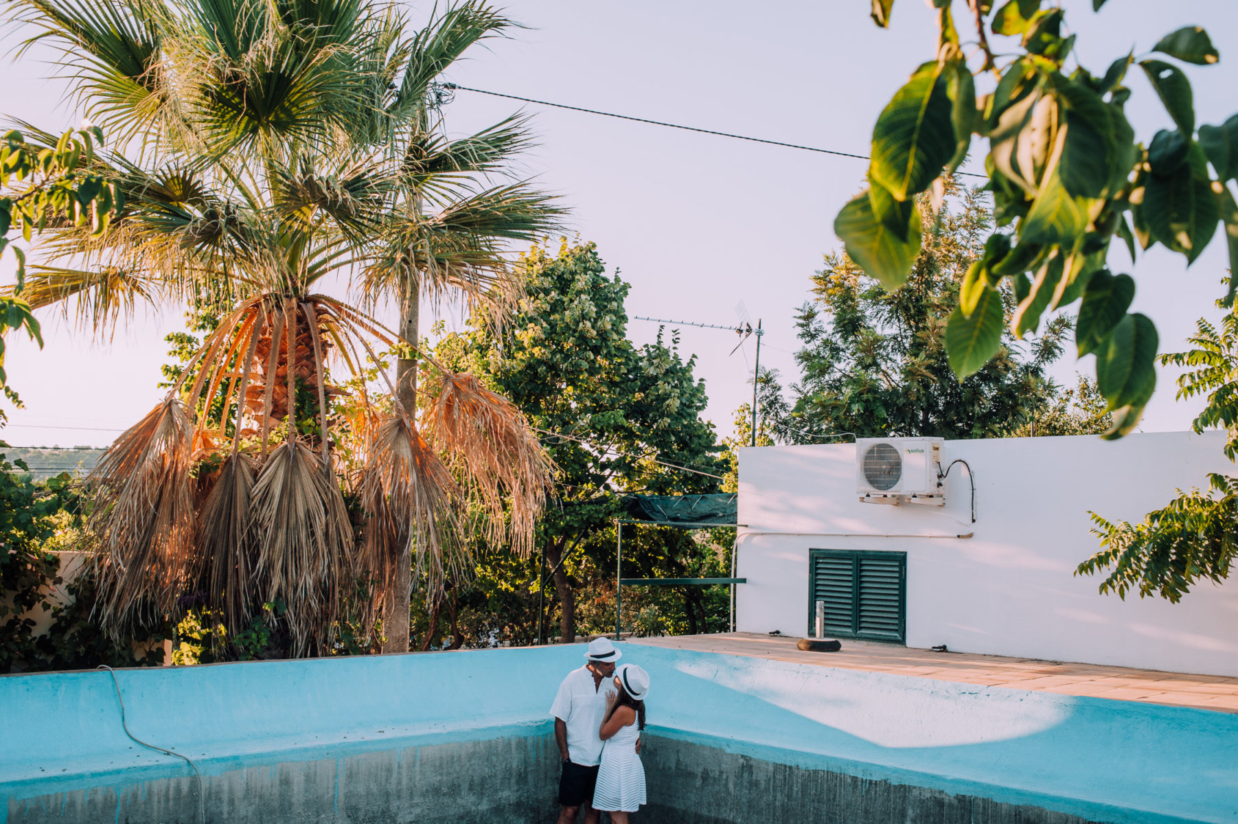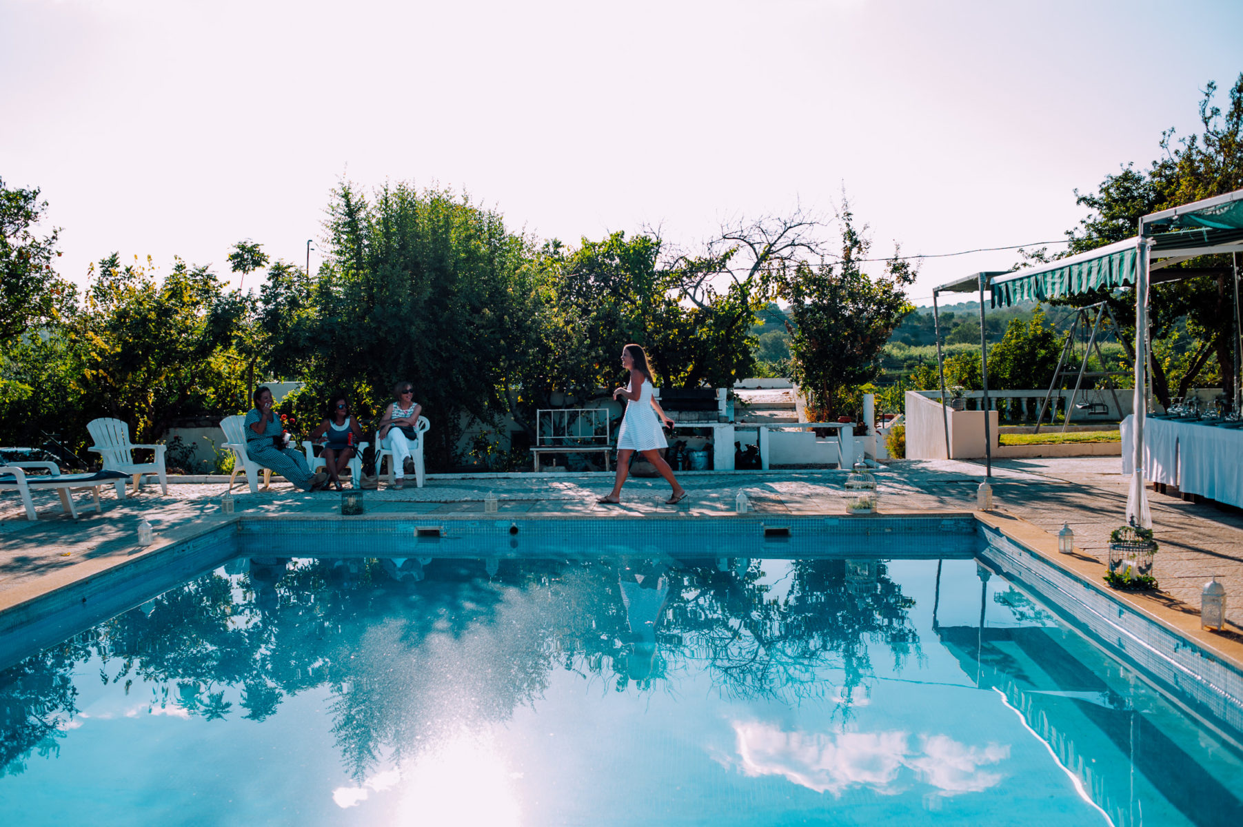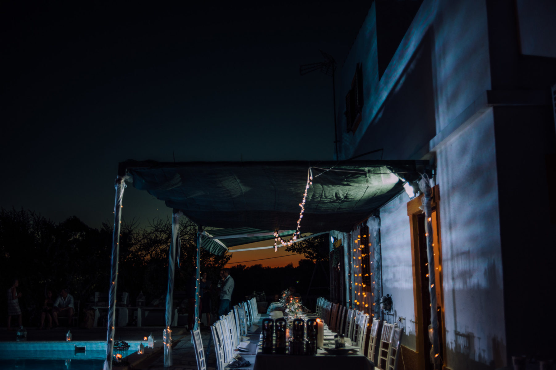 Tavira, summer, a hot night, a birthday celebration turned into wedding, surprised guests, family gathering, swimming pool dance floor, and one of the most amazing sunsets on a love full day. Venue at Quinta das Romãs (private house)